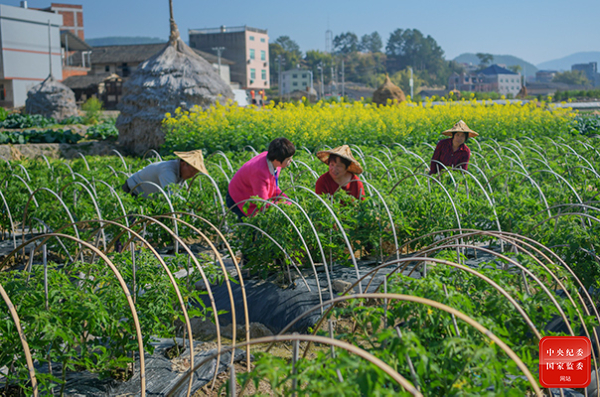 江苏省盱眙县纪委监委持续跟踪督查脱贫村居和农户收入变化以及“两不愁三保障”巩固情况,督促职能部门建立健全防止返贫、解决新生和次生贫困长效机制,为巩固脱贫攻坚成果、有效衔接乡村振兴精准护航。图为该县纪检监察干部在河桥镇某西红柿种植大棚走访了解惠农补贴发放情况。(江苏省盱眙县纪委监委 王小龙 摄)