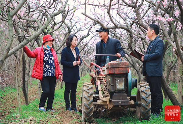 河南省项城市纪委监委紧盯村组干部作风是否懈怠、产业扶贫政策是否持续、扶贫项目资金是否到位等,深入基层收集落实“四不摘”方面存在的问题和不足,推进脱贫攻坚与乡村振兴有效衔接。图为项城市纪检监察干部在东张营村桃树种植园了解惠农补贴落实情况。(河南省项城市纪委监委 张鑫 摄)