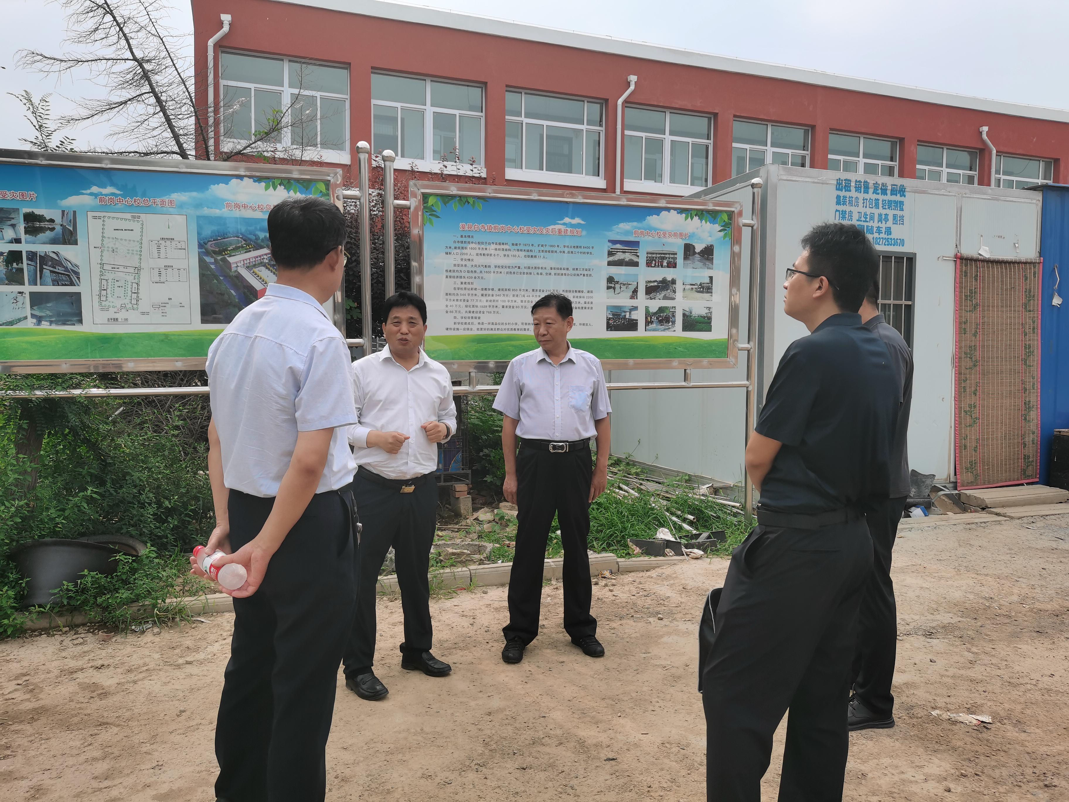 监督检查组先后到浚县白寺镇前岗中心校、白庄中心校、东许庄学校等地,实地查看项目重建和管理工作,详细了解项目进展、工程质量、施工管理、资金使用等情况。在浚县教体局,监督检查组与县教体局主要负责同志进行沟通交流,深入了解项目推进过程中存在的问题和困难,并就做好灾后恢复重建项目实施工作提出明确要求。