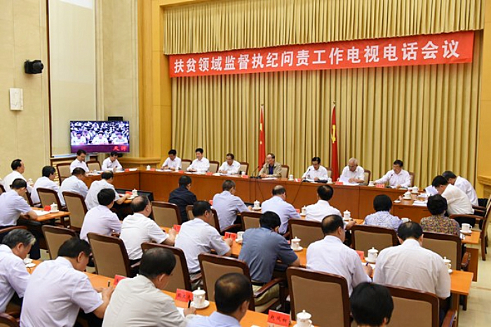 中共中央政治局常委、中央纪委书记王岐山3日出席扶贫领域监督执纪问责工作电视电话会并讲话。(中央纪委监察部网站 徐梦龙 摄)