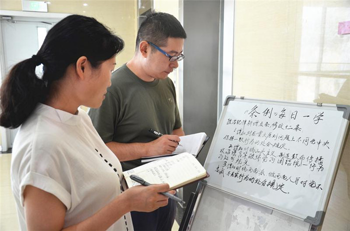 舞钢市纪委监察委在机关内设置“《条例》每日一学”版面,分章节对修改内容进行展示,提醒纪检监察干部利用碎片化时间,随学随记。