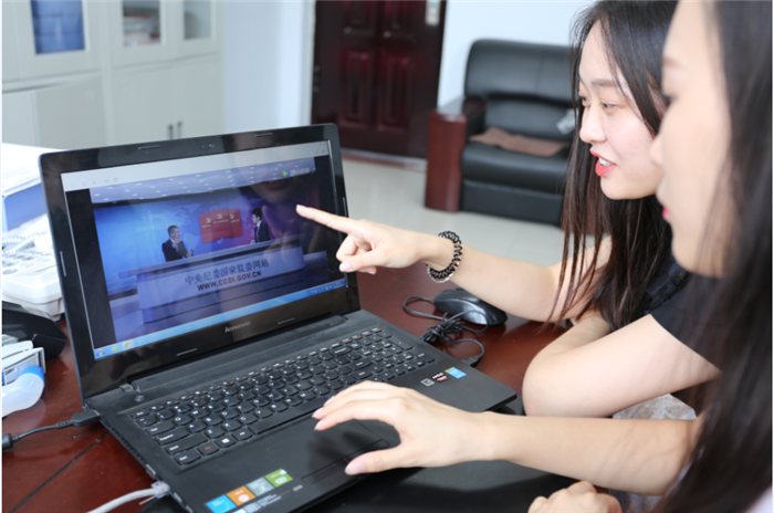 焦作市山阳区纪检监察干部利用网络平台认真学习新修订《条例》相关视频,在交流中增强学习效果。