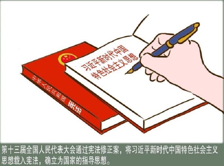 第十三届全国人民代表大会审议通过的宪法修正案,将习近平新时代中国特色社会主义思想载入宪法,确立为国家的指导思想。