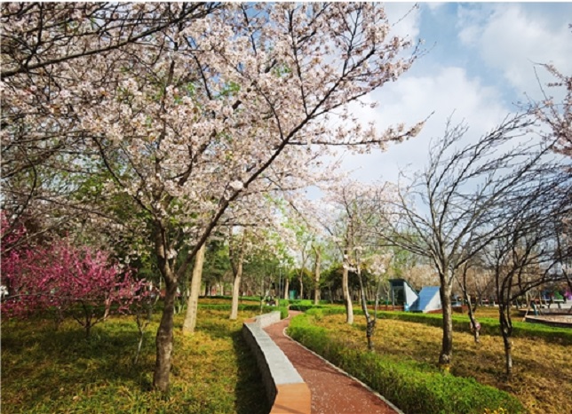 春光明媚、微风送暖。樱花次第开放,一幅春色美丽画卷徐徐展开。(淇滨区纪委监委李玲摄)