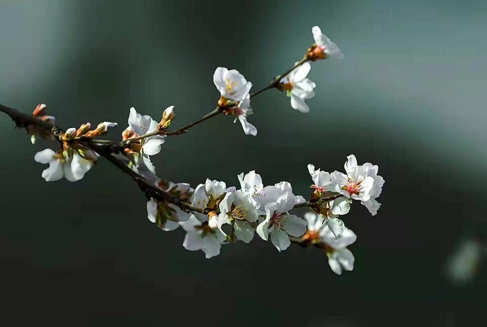 一树繁花早争春,幽香满径惹蜂来。(驻市生态环境局纪检监察组安建军摄)