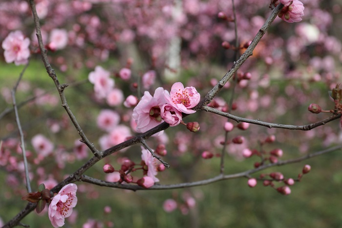阳光明媚,草长莺飞间,几树美人梅笑迎春日,景象好不热闹。(驻市教体局纪检监察组巩盈雪摄)