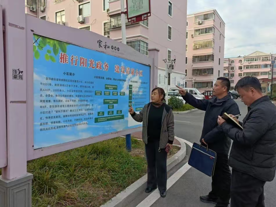 淇滨区纪委监委统筹乡镇(街道)监督力量,运用阳光政务平台规范村(社区)集体“三资”管理,推动基层“小微权力”规范运行。图为该区黎阳路街道纪工委工作人员在佳和豪苑小区了解居务公开情况。(淇滨区纪委监委 梁福安 摄)