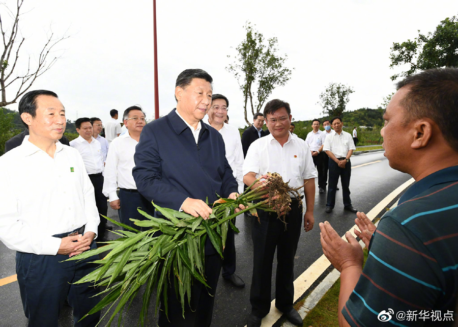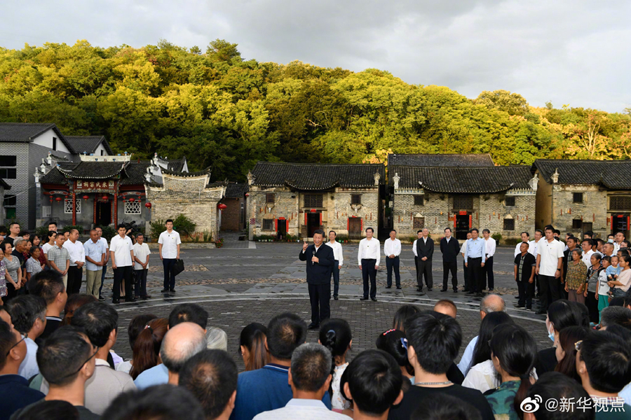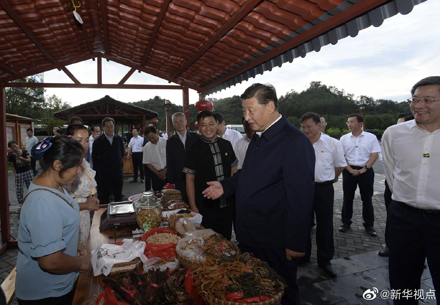 习近平总书记16日赴湖南考察调研。当天下午,他来到郴州市汝城县文明瑶族乡沙洲瑶族村“半条被子的温暖”专题陈列馆、村服务中心和卫生室、沙洲现代农旅示范基地、文明瑶族乡第一片小学,以及村民家中,了解当地开展红色教育、发展扶贫产业、巩固脱贫成果等情况。(文字记者张晓松、朱基钗 摄影记者李学仁、谢环驰、岳月伟 )