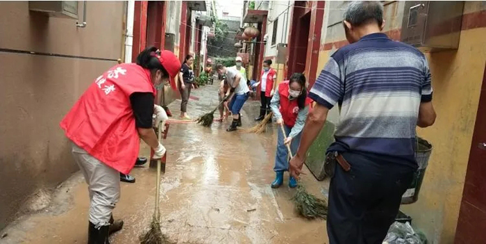 连日来的持续降雨,导致沁阳各个小区淤泥遍布、垃圾散落,该市纪委监委忠诚卫士志愿者服务队深入分包的御景园小区,清扫灾后垃圾,冲洗道路淤泥,共建美丽家园,用实际行动展现党员风采,诠释忠诚干净担当。(邢沙沙 摄)