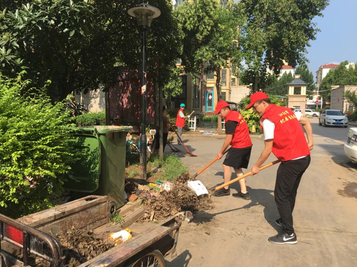 解放区纪委监委党员志愿者服务小组前往道清里社区,协助开展汛后垃圾清理工作。