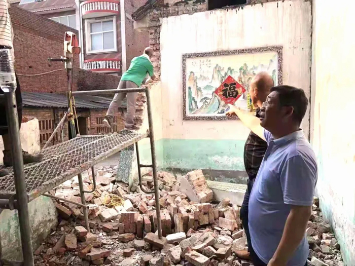 孟州市纪检监察干部到该市小宋庄村监督危房修缮情况,帮助群众开展灾后清淤等工作,助力群众尽快恢复生产生活秩序。 ( 韩琪 摄)
