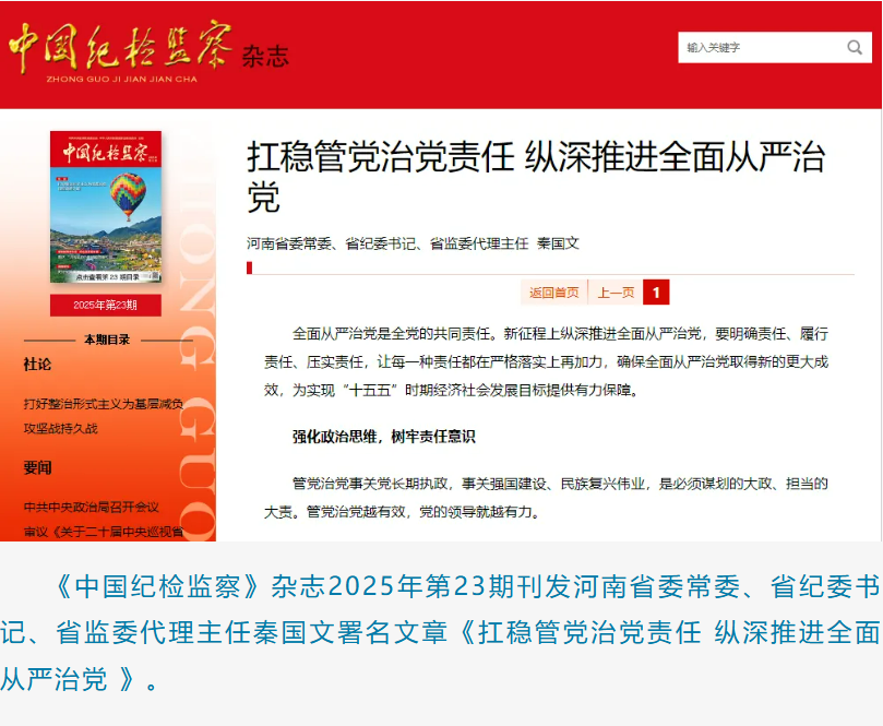 全面从严治党是全党的共同责任。新征程上纵深推进全面从严治党,要明确责任、履行责任、压实责任,让每一种责任都在严格落实上再加力,确保全面从严治党取得新的更大成效,为实现“十五五”时期经济社会发展目标提供有力保障。