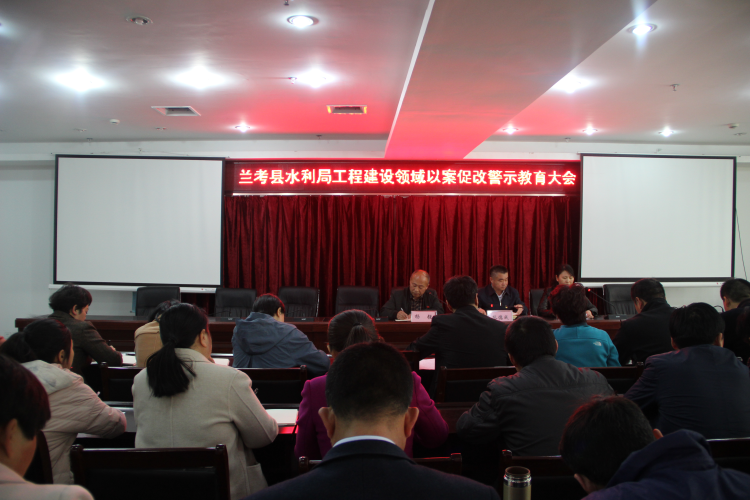 会上通报了县农村公路管理所监管失职案件案情,要求把水利建设做成良心工程、精品工程,如出现问题,无论涉及到谁,将严肃执纪,一查到底。会上传达了《兰考县工程建设领域以案促改实施方案》文件精神,要求全体党员干部切实增强“四个意识”,坚定“四个自信”,站在“两个维护”的政治高度,健全完善制度,强化不敢腐的震慑效应,补齐不能腐的制度短板,激发不想腐的内生动力,认真查摆两年来水利工程建设状况,严格工程质量、充分发挥工程效益,做到工程安全、资金安全、生产安全、干部安全。