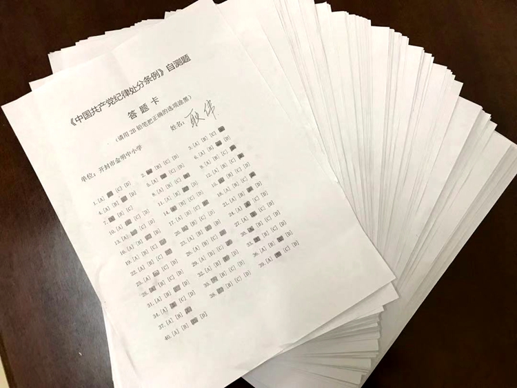 本次《条例》自测题共40题。主要围绕党纪处分工作应当坚守的原则、执纪监督“四种形态”的内容、党员纪律处分的种类及案例分析等内容进行全面考察,整个教育、体育系统的党员干部都取得了较好的成绩。通过本次学习《条例》自测,广大党员干部纷纷表示,本次竞赛活动不仅是对近段时间以来学习《条例》情况的一次自我检测,同时也是对学习《条例》内容的再次巩固加深。