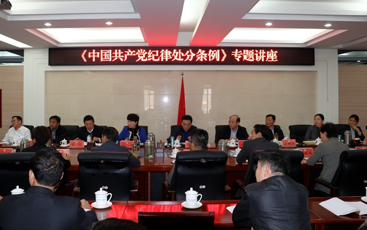 为全面领会、准确把握《中国共产党纪律处分条例》的核心要义和精神实质,增强党规党纪意识,筑牢拒腐防变的思想防线,10月23日下午,驻市政协纪检监察组邀请市纪委监察委案件审理室负责人宋剑对新修订的《条例》进行辅导。市政协主席焦跃进,副主席刘俊杰、赵洁、苏国志、苗琛、邢广华、刘海潮、刘述荣、张志刚出席讲座。市政协秘书长张绍庆主持讲座。