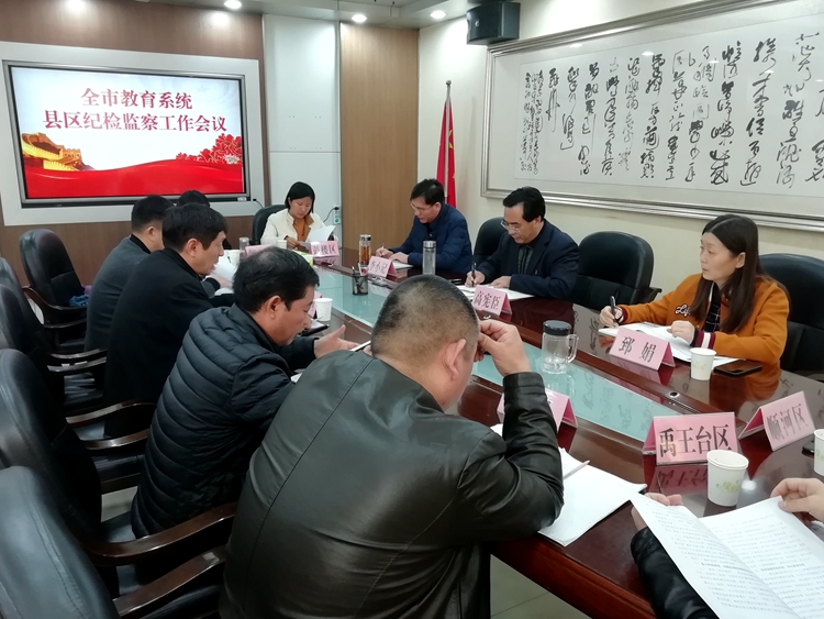 近日,市纪委监察委驻市教育局纪检监察组组织召开全市教育系统县区纪检监察工作会议。各县(区)教(文)体局纪委书记、监察室主任,市纪委监察委驻市教育局纪检监察组全体人员参加了会议。