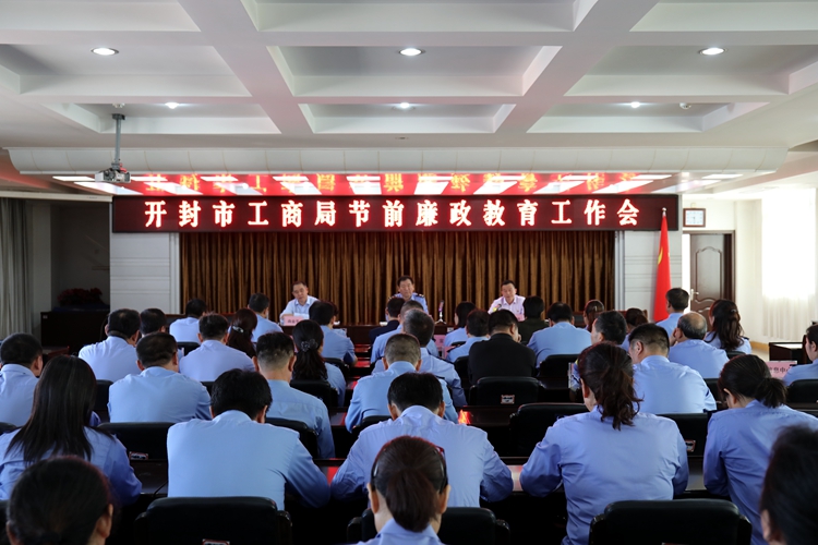 为进一步贯彻落实《关于开展违反中央八项规定精神突出问题专项治理“清风行动”工作方案》、《中共开封市纪委关于持之以恒正风肃纪确保中秋国庆廉洁过节的通知》、《全市严明政治纪律和政治规矩开展整治“帮圈文化”专项排查工作方案》等文件精神要求,严防“四风”反弹,杜绝“节日腐败”,营造崇廉尚俭、风清气正的节日氛围,9月30日上午,市工商局召开中层以上干部大会,开展节前廉政教育。