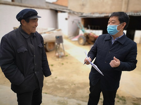 (图为,尉氏县纪委常委王永成(右)在邓四家走访)