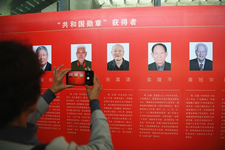 馆藏文献展以弘扬42位被授予国家勋章和国家荣誉称号的功勋模范人物为主题,从2000余种与获得者相关的馆藏文献中,精选他们的代表性著作、相关研究型文献和新闻报道资料,共展出《中国当代著名科学家丛书——于敏》《北斗二号卫星工程:系统工程管理》《杂交水稻育种栽培学》《青蒿及青蒿素类药物》等图书65本,报刊19册。