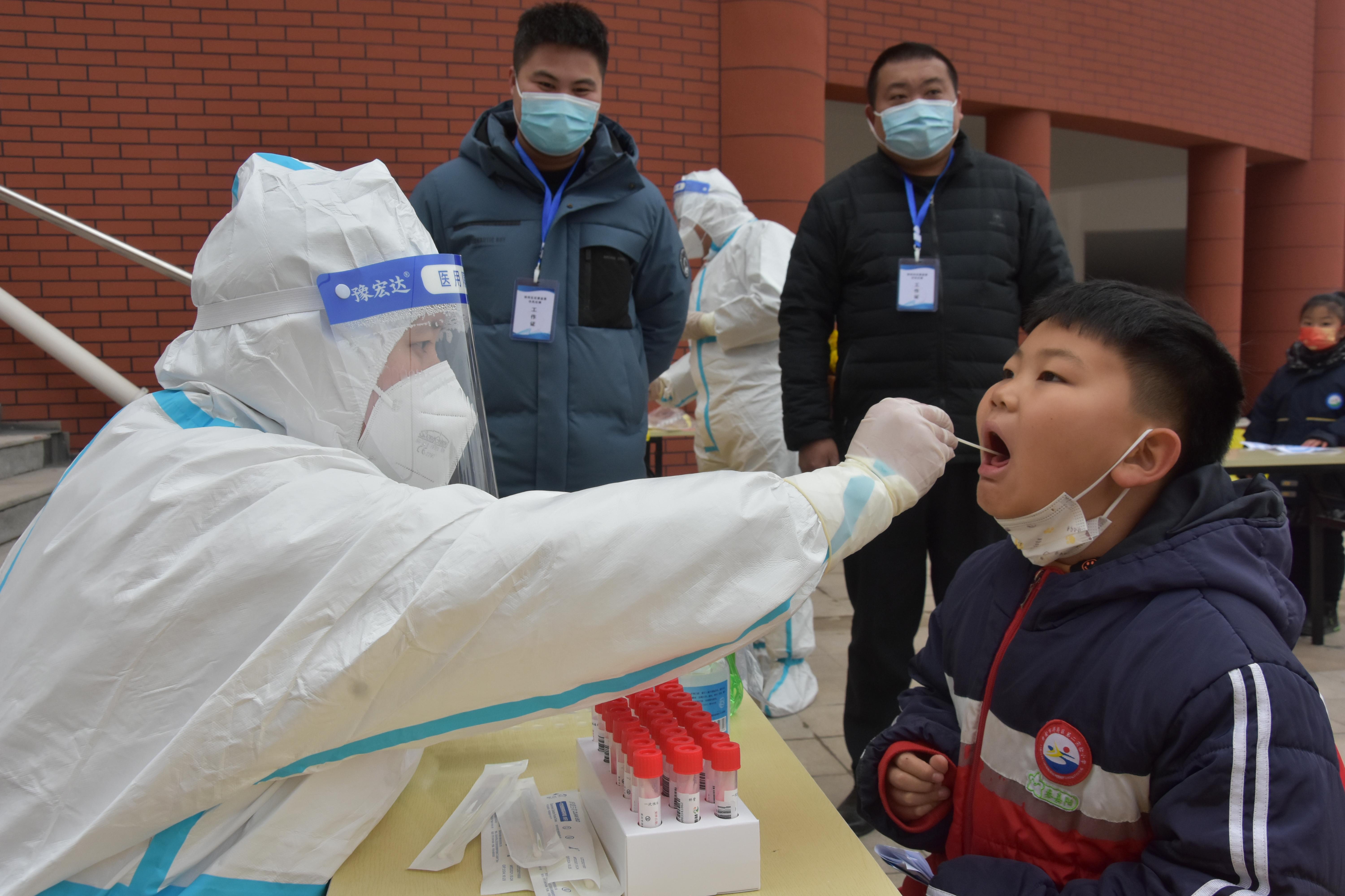 为切实做好学校核酸检测工作,确保全区师生平安开学,祥符区纪委监委精准监督、分类施策,筑牢学校疫情防控“安全线”。图为2022年2月16日,驻祥符区教体局纪检监察组工作人员在该区第二实验中学核酸检测点监督检查现场秩序。(田小盼 摄)