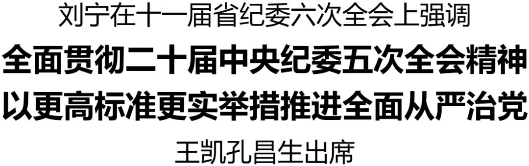 刘宁充分肯定了过去一年我省全面从严治党取得的成绩,代表省委向全省纪检监察系统的同志们表示诚挚慰问。他强调,“十五五”时期是基本实现社会主义现代化夯实基础、全面发力的关键时期,是我省扬长补短、全面崛起的关键阶段。要深入贯彻二十届中央纪委五次全会精神,着力加强规范化法治化正规化建设,一体推进不敢腐、不能腐、不想腐,推动我省纪检监察工作迈出新步伐。要更加坚决有力地贯彻落实党中央重大决策部署,聚焦“两个维护”强化政治监督,围绕各项重大任务加强具体化、精准化、常态化监督检查,旗帜鲜明向政绩观错位问题亮剑,推动全省各级党组织和广大党员干部增强政治责任感、历史使命感,创造经得起实践、人民、历史检验的实绩。要更加科学有效地把权力关进制度笼子,以领导机关、领导干部特别是“一把手”、关键岗位为监督重点,完善法规制度,严格制度执行,增强刚性约束,锲而不舍落实中央八项规定精神,特别是对违规吃喝问题露头就打、反复敲打、人人喊打,推动作风建设常态化长效化。要更加清醒坚定地推进反腐败斗争,保持高压态势不动摇,不断提高反腐败穿透力,深化风腐同查同治,抓实以案促改促治,加强廉洁文化建设。要更加全面彻底地抓好中央巡视反馈意见整改落实,加强协同联动,动真碰硬整改问题,标本兼治完善制度,推动整改不断向深处发力、在实处见效,确保取得让干部群众可感可及的实绩实效。