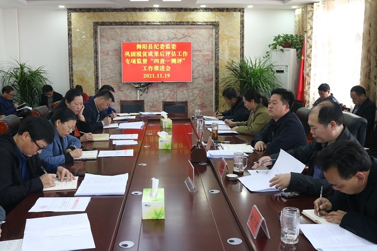 11月19日,舞阳县纪委监委召开巩固脱贫成果后评估工作专项监督”四查一测评“工作推进会。会议传达学习了《舞阳县纪委监委巩固脱贫成果后评估工作专项监督”四查一测评“工作方案》,并对方案进行了解读。