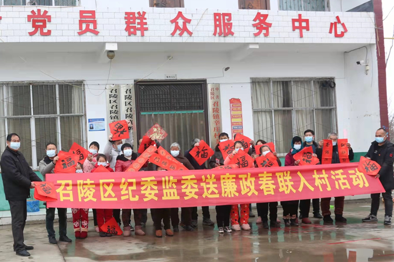 墨香迎新春,春联送祝福。1月24日,召陵区纪委监委邀请书法家协会会员来到结对帮扶的召陵镇辛庄村,开展送“廉”下乡主题活动,将廉政文化与传统春联结合起来,用群众喜闻乐见的形式送“廉”送“福”到基层。