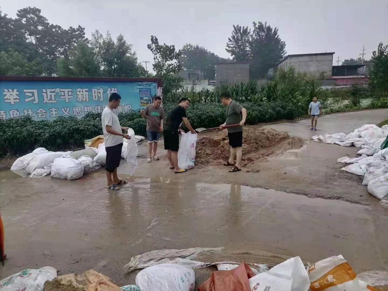 图为窝城镇纪委成员主动下沉到村,帮助发放抗汛物资、疏通河道