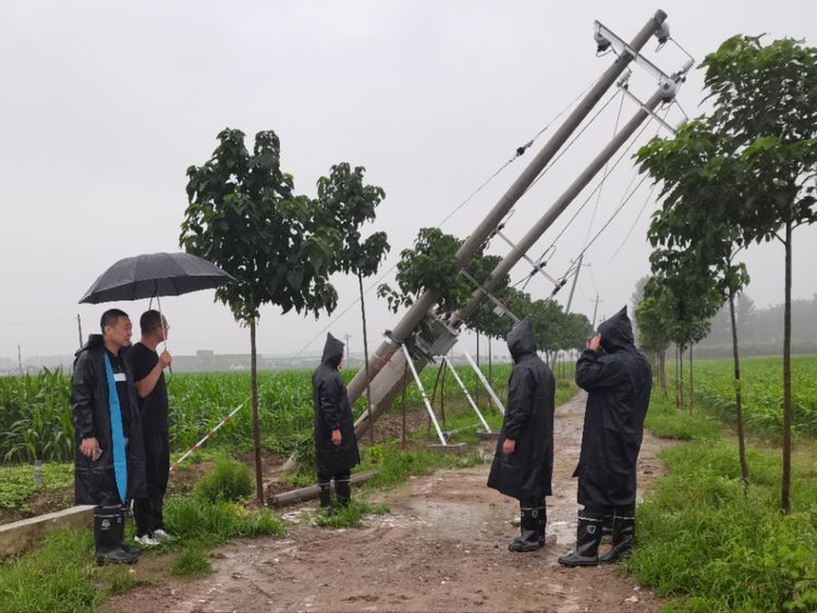 图为固厢乡纪检干部及时联系电力部门迅速进行险情排查,恢复电力供应