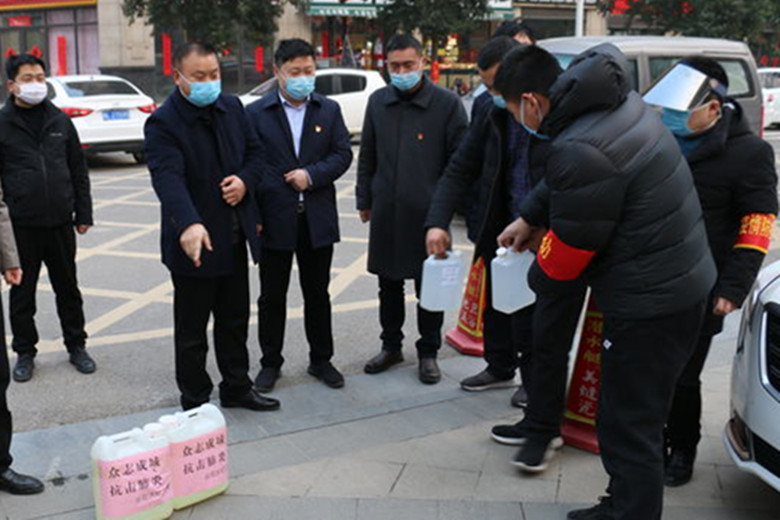 赵洪亮一行为奋战在一线的防疫人员送上消毒液、医用酒精、额温枪等慰问品