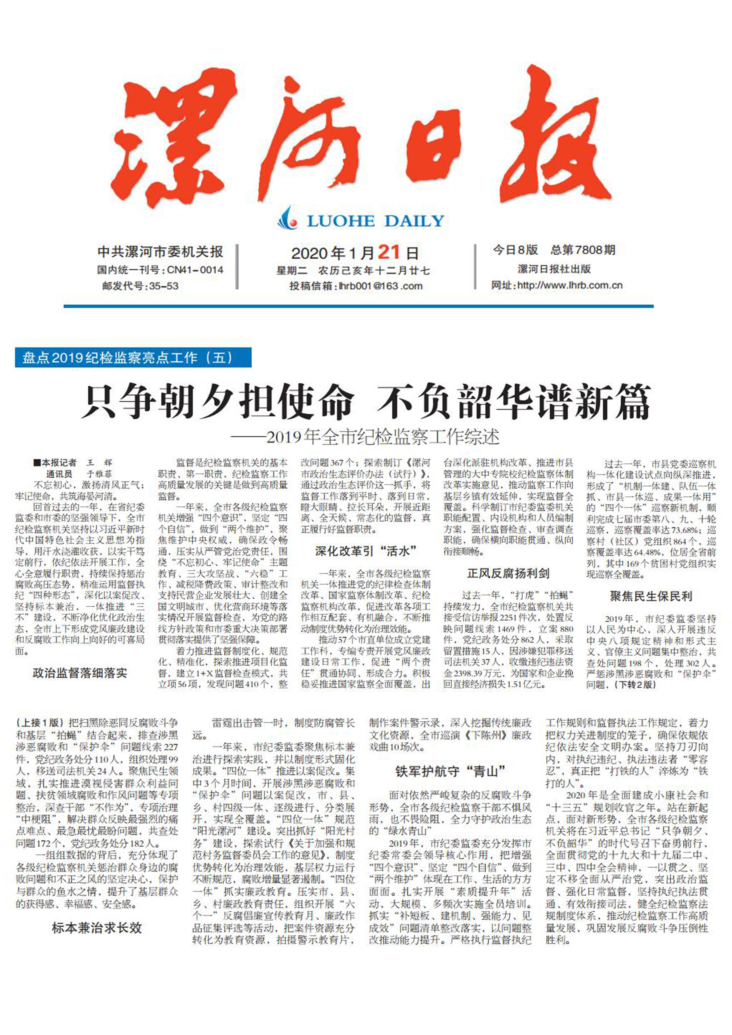【盘点2019纪检监察亮点工作】(五)只争朝夕担使命 不负韶华谱新篇