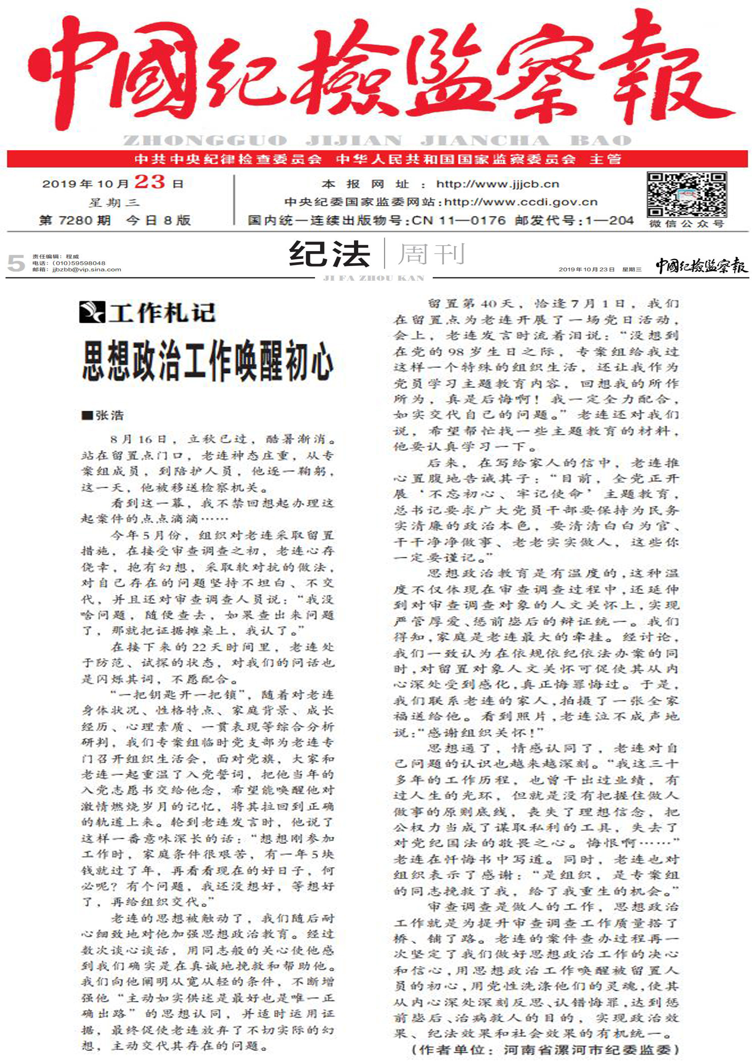审查调查是做人的工作,思想政治工作就是为提升审查调查工作质量搭了桥、铺了路。老连的案件查办过程再一次坚定了我们做好思想政治工作的决心和信心,用思想政治工作唤醒被留置人员的初心,用党性洗涤他们的灵魂,使其从内心深处深刻反思、认错悔罪,达到惩前毖后、治病救人的目的,实现政治效果、纪法效果和社会效果的有机统一。