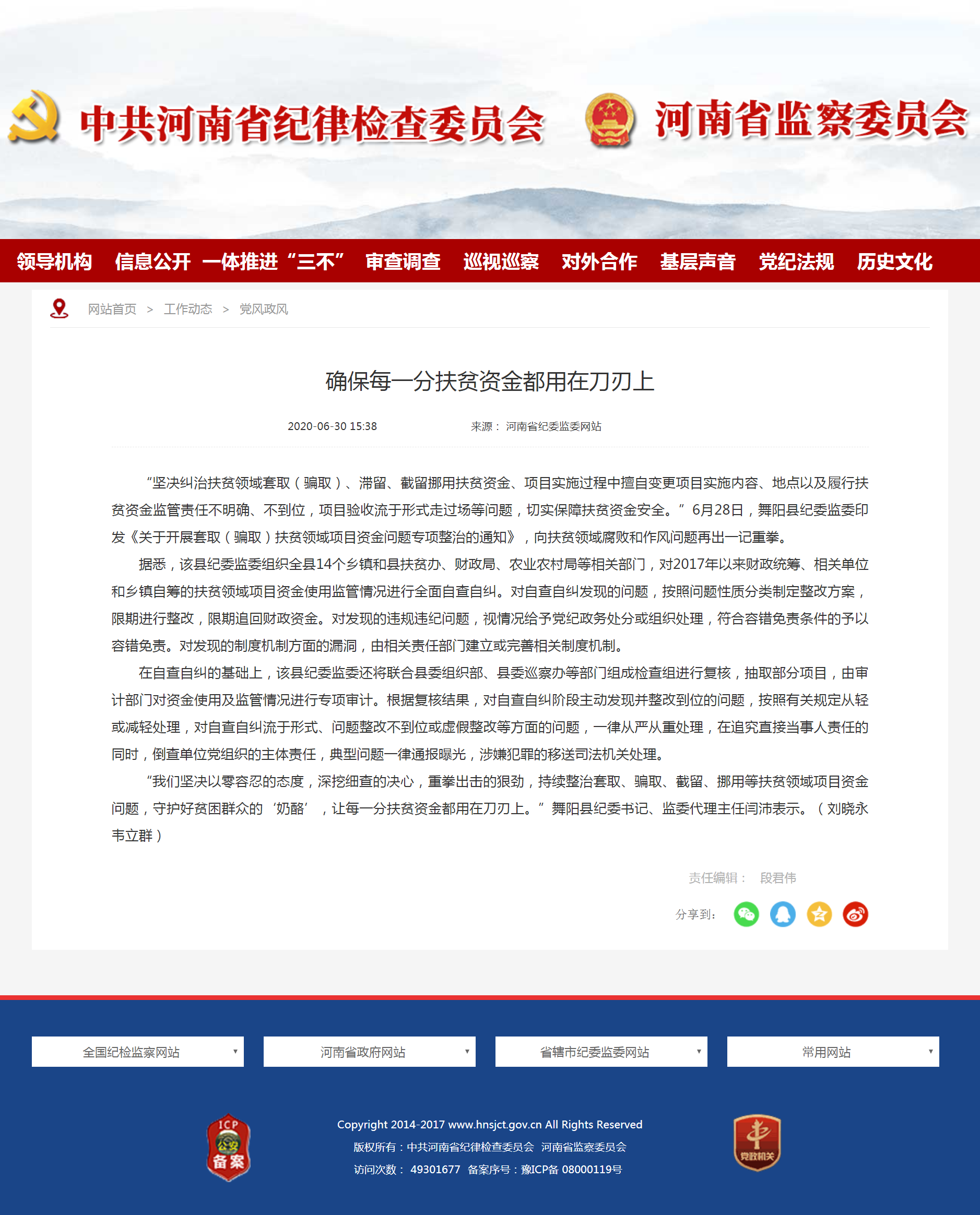 【河南省纪委监委网站】确保每一分扶贫资金都用在刀刃上