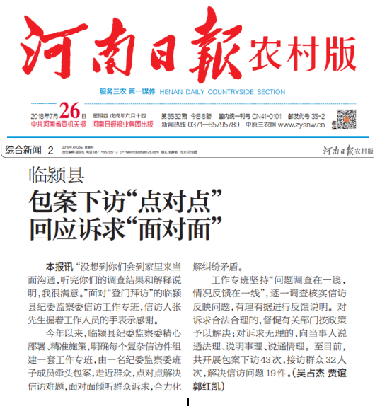 今年以来,临颍县纪委监察委精心部署、精准施策,明确每个复杂信访件组建一套工作专班,由一名纪委监察委班子成员牵头包案,走近群众,点对点解决信访难题,面对面倾听群众诉求,合力化解纠纷矛盾。