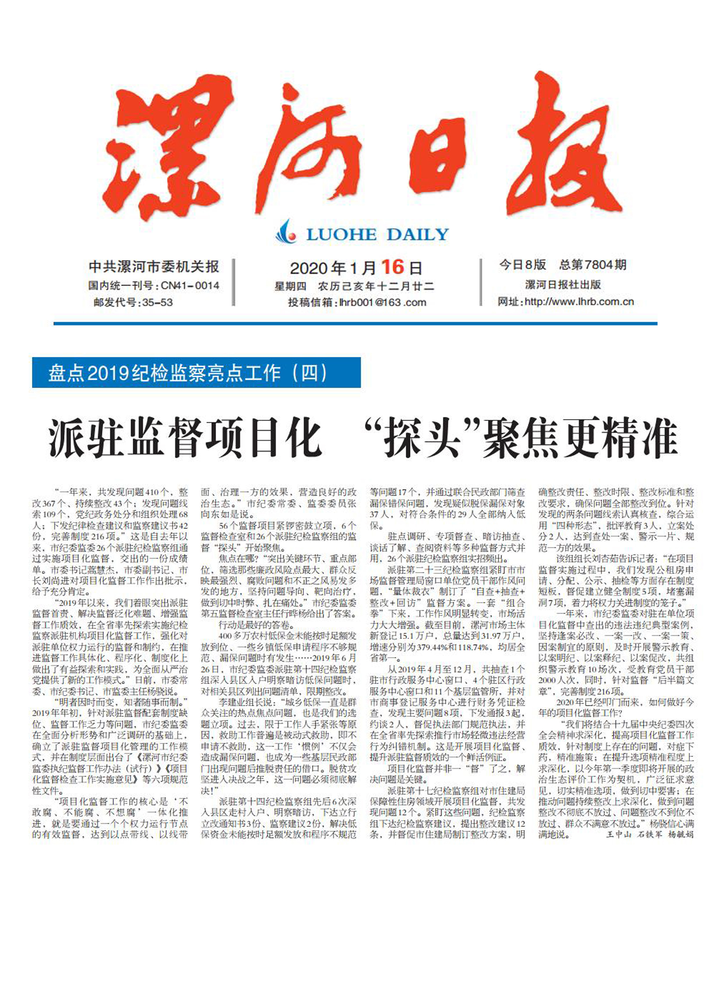 【盘点2019纪检监察亮点工作】(四)派驻监督项目化 “探头”聚焦更精准