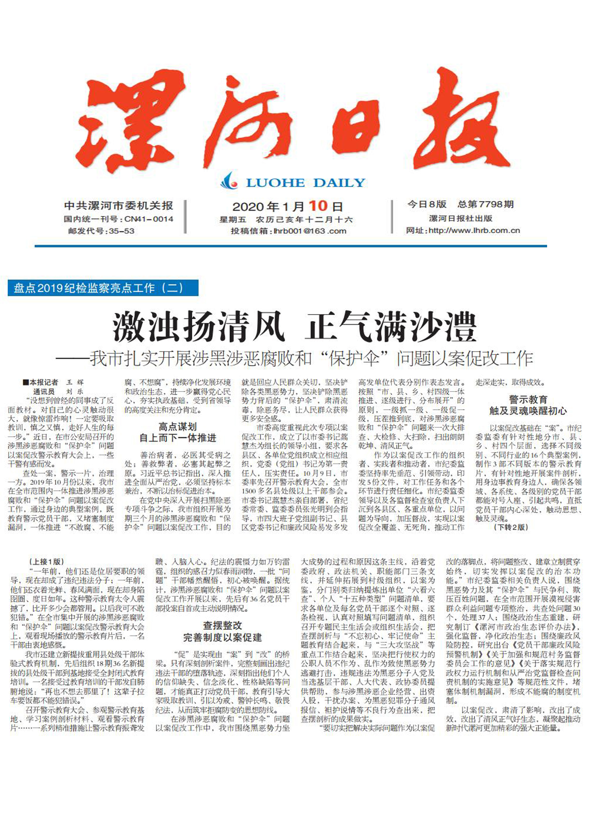 【盘点2019纪检监察亮点工作】(二)激浊扬清风 正气满沙澧 ——我市扎实开展涉黑涉恶腐败和“保护伞”问题以案促改工作