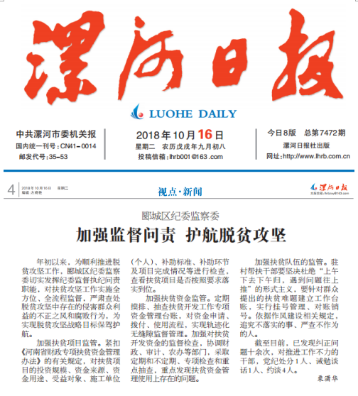 年初以来,为顺利推进脱贫攻坚工作,郾城区纪委监察委切实发挥纪委监督执纪问责职能,对扶贫攻坚工作实施全方位、全流程监督,严肃查处脱贫攻坚中存在的侵害群众利益的不正之风和腐败行为,为实现脱贫攻坚战略目标保驾护航。
