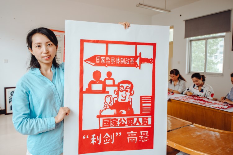 源汇区纪委监察委组织具有剪纸特长的党员干部,围绕监察法诞生、立法精神、实质要义及重点内容,创作剪纸作品,用大众喜闻乐见的传统剪纸艺术宣传解读监察法。(源汇区纪委监察委)