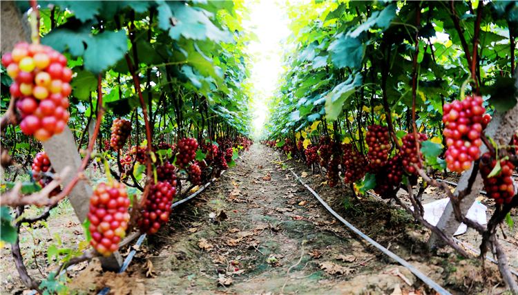 白露是收获的季节,召陵区一处葡萄园内,一串串紫红的葡萄晶莹剔透,如玉珠般悬挂满架,谱写着秋天的动人旋律。