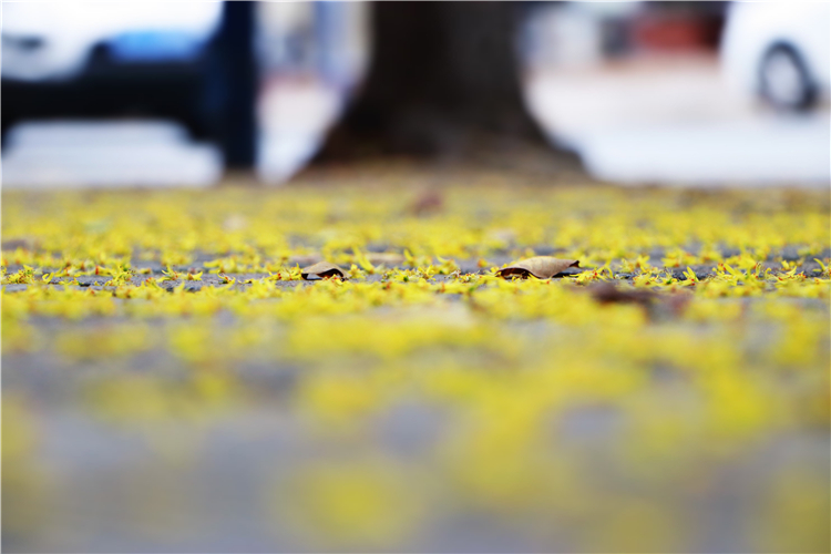 伴随着微微秋风,舞阳县街道上黄山栾树的花朵铺满人行道,那满目的金黄仿佛在诉说着初秋的斑斓。