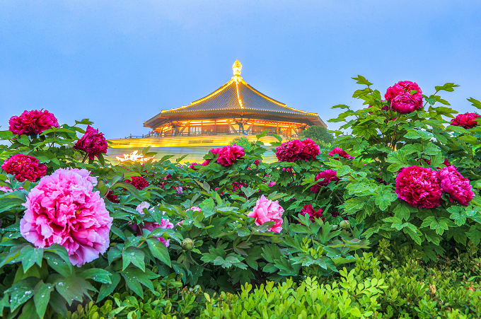 “霏霏雨露作清妍,烁烁明灯照欲然。”古都洛阳明堂前盛放的牡丹经过春雨的沐浴,有着出水芙蓉般的娇艳。晶莹剔透的雨点滴落在花瓣上、滚动在枝叶间,演奏着暮春时节最美的乐章。(洛阳市涧西区纪委监委 段万卿 摄)