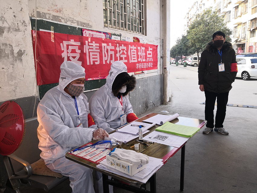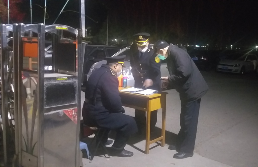疫情发生以来,河南省洛阳市洛龙区学府街道办事处龙和社区出入口,由社区干部、党员代表、志愿者共同组成的联防工作组正严阵以待、严防死守。