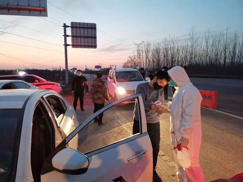 河南省偃师市在偃洛快速通道林安物流路口设立卡点,检测人员体温,及时对过往车辆消毒,严防病毒侵入。