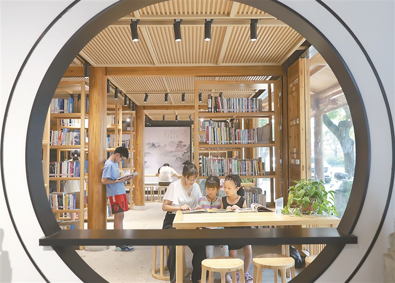图为在浙江省台州市路桥区蓬街镇小伍份村乡村图书室,小朋友在家长陪伴下阅读书籍。 图片来源:视觉中国