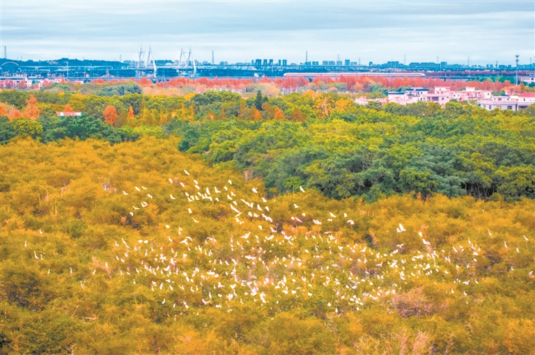 27年前,被称为“顺德鸟叔”的冼铨辉因种竹与鹭鸟结缘,从此以半生坚守,书写了一部爱鸟护鸟的篇章。图为近日,鹭鸟在云鹭湿地公园栖息。 新华社发(陈志广 摄)