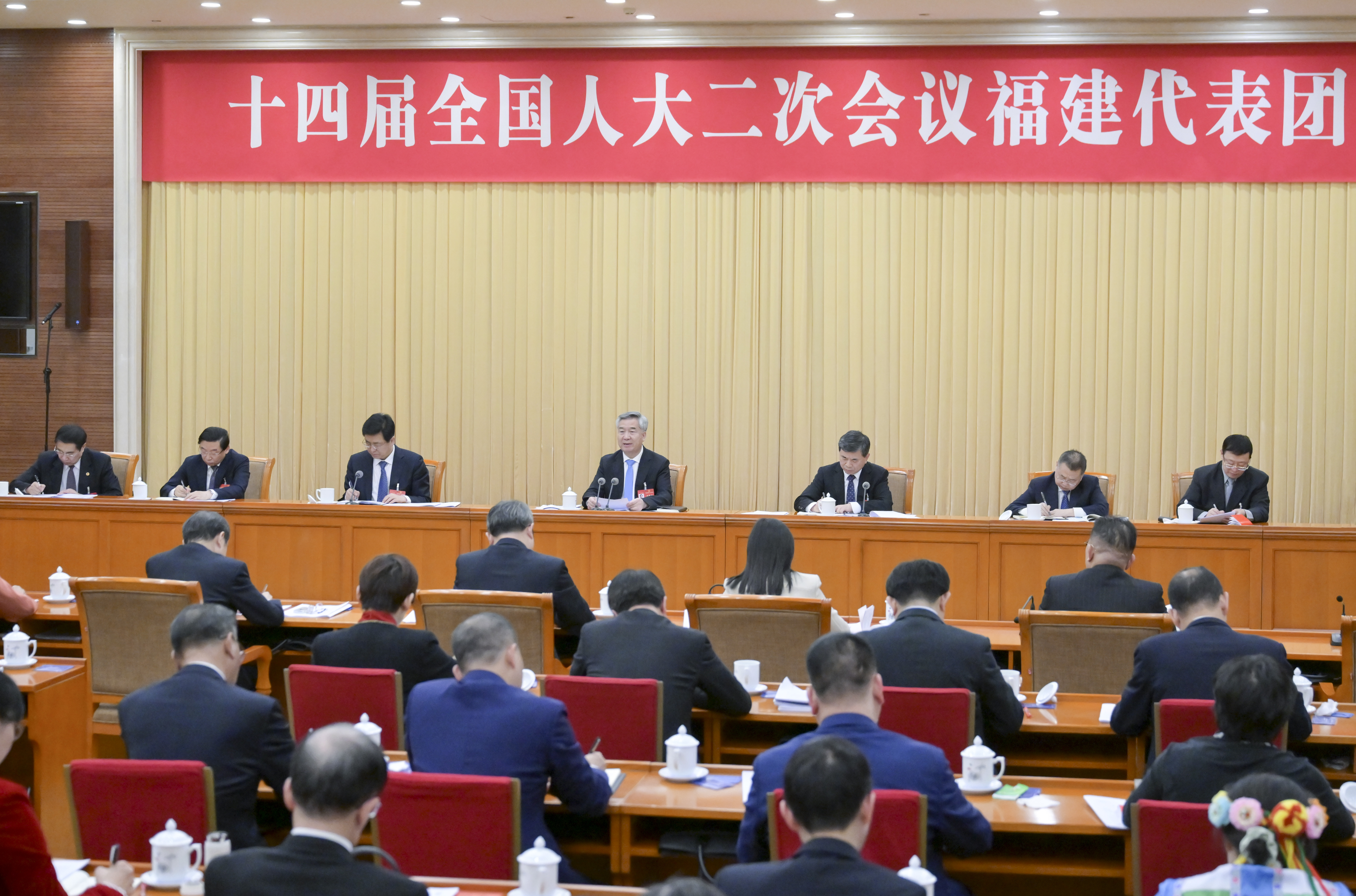 3月5日,中共中央政治局常委、中央纪委书记李希来到他所在的福建代表团,同代表们一起审议政府工作报告。新华社记者 高洁摄