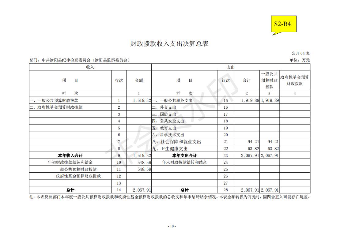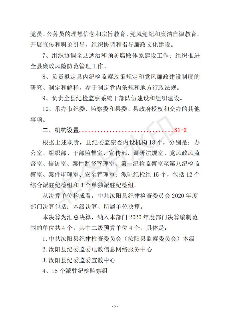 汝阳县纪委监委2020年度决算公开