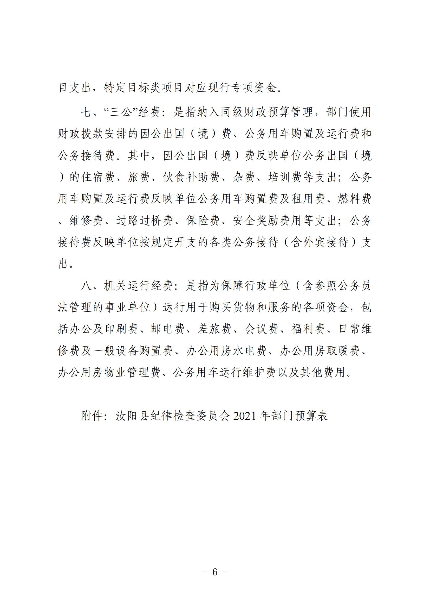 汝阳县纪委监委2021年度部门预算公开