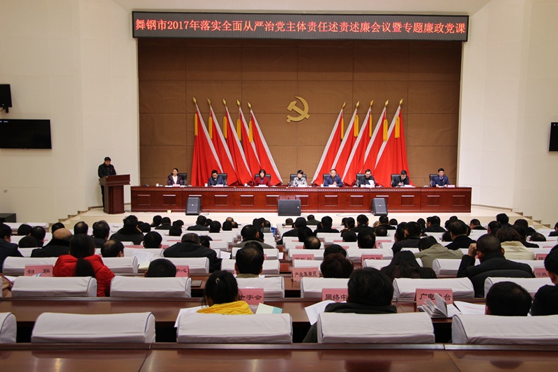 2月2日下午,舞钢市召开2017年落实全面从严治党主体责任述责述廉会议,市委书记陈英杰作为主考官,逐一对述责述廉对象进行现场质询,问题条条戳到“麻骨”,句句点到“痛处”。