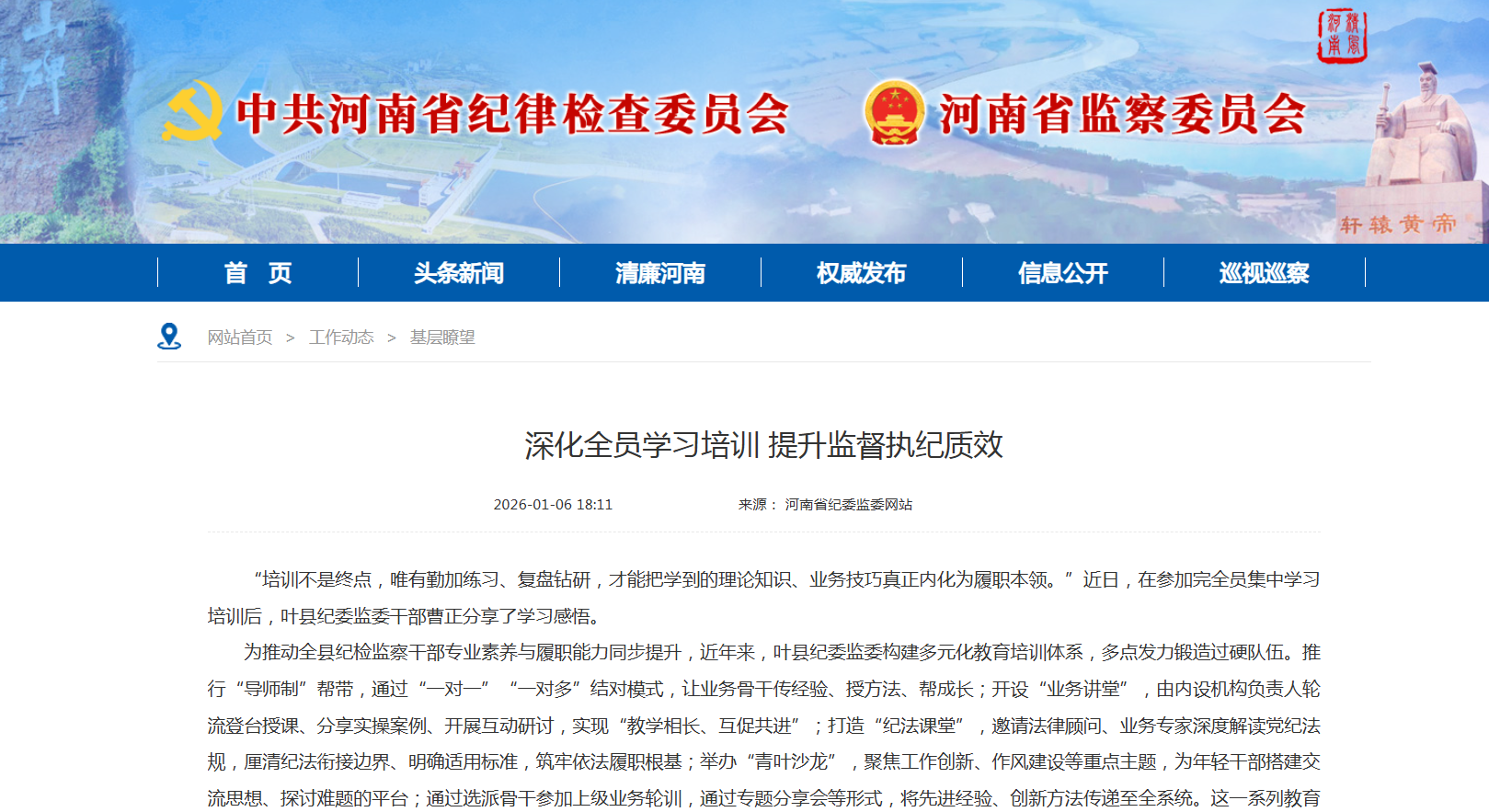 “培训不是终点,唯有勤加练习、复盘钻研,才能把学到的理论知识、业务技巧真正内化为履职本领。”近日,在参加完全员集中学习培训后,叶县纪委监委干部曹正分享了学习感悟。